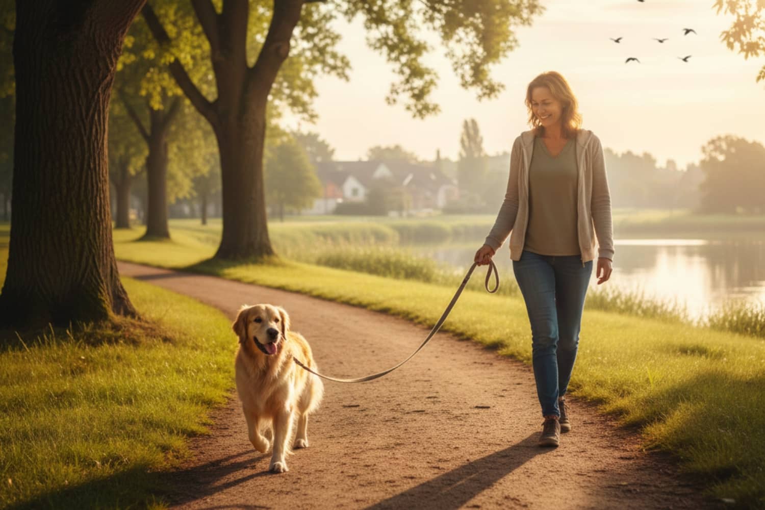 Ein entspannter Spaziergang in der Morgensonne, die Vögel zwitschern und dein Hund läuft einfach locker neben dir her. Die Leine bildet einen sanften Bogen, deine Schultern sind locker und ihr beide genießt einfach die gemeinsame Zeit unter freiem Himmel. Das ist kein unerreichbares Idealbild, sondern das Ziel einer guten Leinenführigkeit.